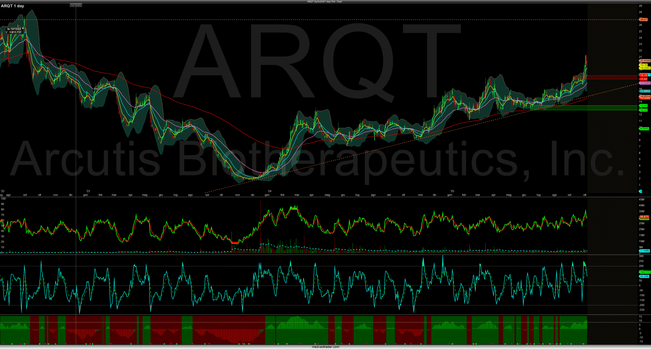 Questo è un catalyst ravvicinato (13 oct) quindi va valutato con le pinze, in quanto ha già fatto un “runup” e quindi un vero spike lo avrebbe con un’approvazione dell’espansione. Cmq è interessante, sia da grafico con diversi obiettivi, sia per il fatto che già si stà vendendo il prodotto, $ARQT.